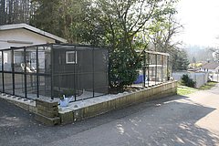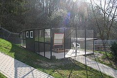 Wir haben neue Volieren von der Fa. Ebers bauen lassen.Hier können wir individuell Kleintiere wie Kaninchen/Meerschweinchen/Vögel unterbringen. Alternativ könnten wir hier notfalls sogar gänzlich andere Tierarten für den Übergang unterbringen. In das Schutzhaus kommt noch eine Heizung.