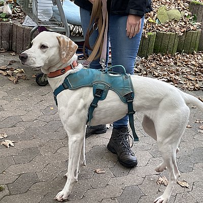 Grundlegend ist Bailey mit Rüden verträglich. Allerdings hat sie wirklich Power ohne Ende und sollte es bereits einen Rüden im Zuhause geben, sollte der etwa ihre Größe haben und ihr gewachsen sein. Es liegt dann auch an den Menschen, Bailey auszubremsen und ihr Ruhe halten beizubringen. Denn das fällt ihr durchaus noch schwer. Dies könnte auch zur Folge haben, dass ihr das alleine bleiben schwer fällt. Wobei wir positiv erwähnen müssen, dass sie im Zwinger auch relativ schnell zusammengekringelt da liegt und runterfährt.