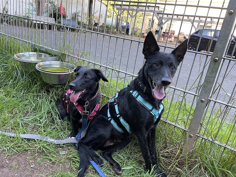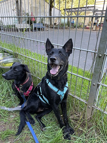 Zugegeben: Bei Ankunft dachten wir „weitere schwer vermittelbare Hunde“… Denn die Beiden gestalteten bereits das Ausladen aus dem Auto zum Abenteuer. Denn so viel Erfahrung haben wir in Jahren gesammelt: Diese beiden Hunde kannten bis zur Ankunft bei uns schlicht und ergreifend einfach nichts. Weder Halsband, noch Leine, noch Geschirr.