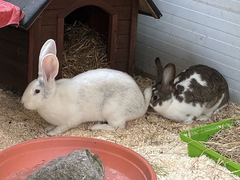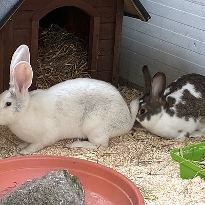Die Kaninchen leben in Außenhaltung.